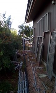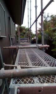こちらは、本日着工しました土浦市H様邸です。本日の作業内容は足場業者による足場の設置です。