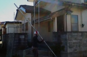 こちらは、本日完了お引渡しになりますひたちなか市I様邸です。足場を解体して清掃を行いお引渡しになります。
