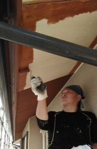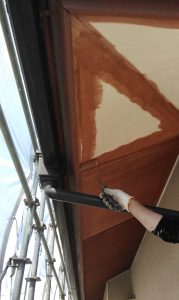 こちらはひたちなか市T様邸です。本日の作業内容は付帯塗装キシラデコールの下塗りになります。